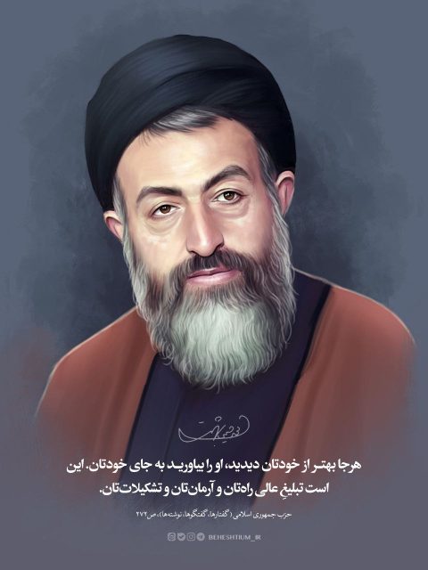 هرجا بهتر از خودتان دیدید، او را بیاورید به جای خودتان. این است تبلیغ عالی راهتان و آرمانتان و تشکیلاتتان.📚سیدمحمدحسینی بهشتی، حزب جمهوری اسلامی (گفتارها، گفتگوها، نوشتهها)، ص۲۷۲